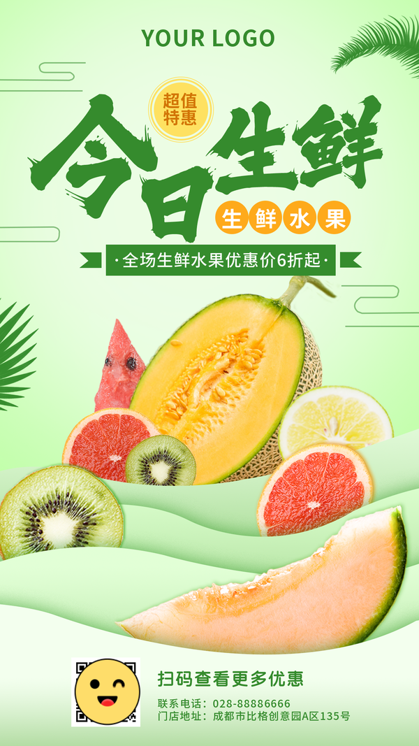 7、綠色生鮮水果優(yōu)惠活動宣傳手機海報