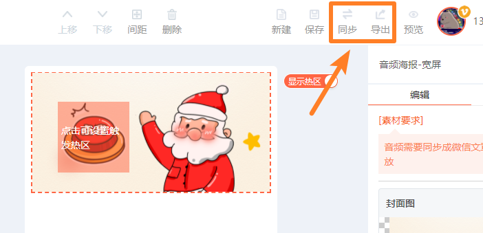 制作好的音頻海報,可以通過導出/同步兩種方式,保存到微信公眾號。具體操作根據(jù)系統(tǒng)提示完成即可。