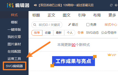 通過135編輯器左側入口進入svg編輯器;