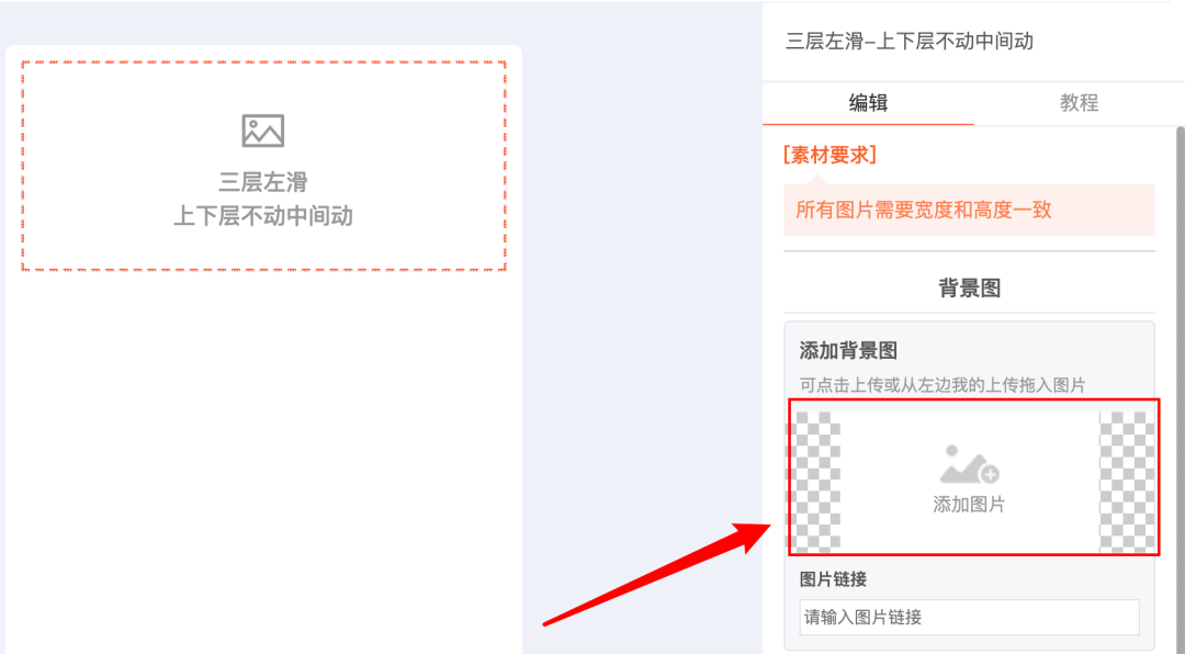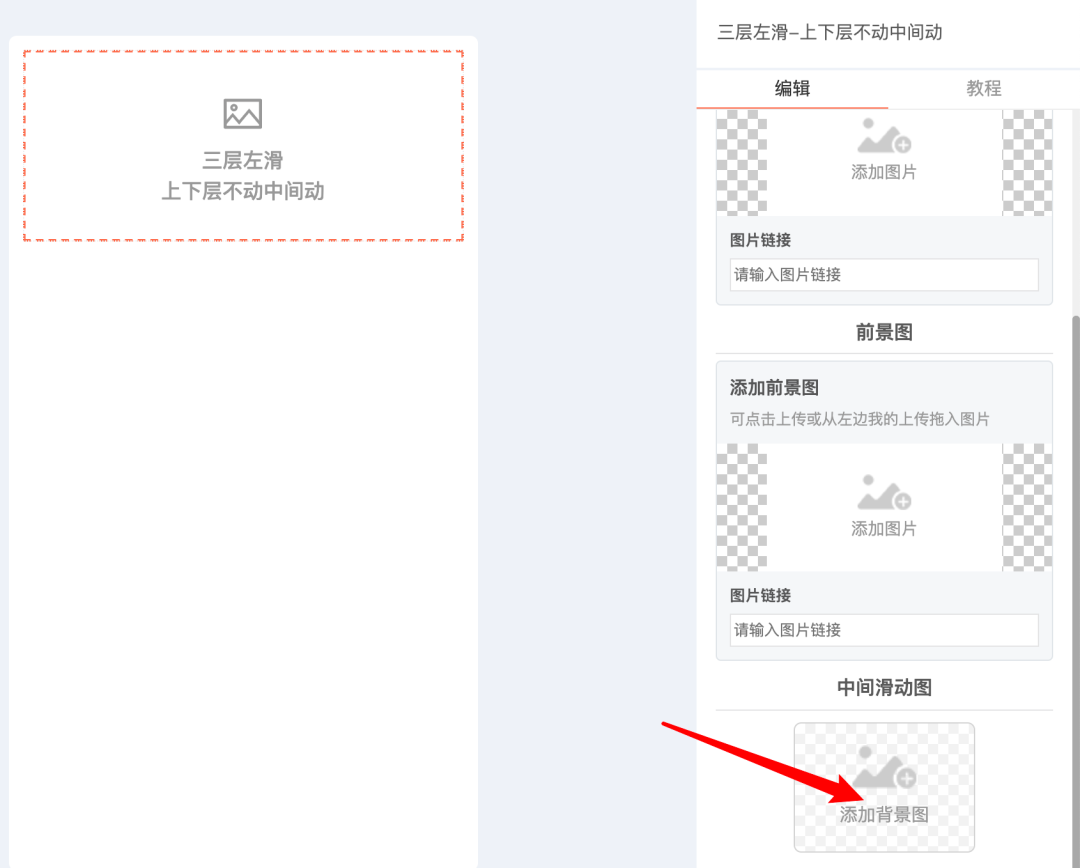 在編輯頁面右側(cè)點擊「中間滑動圖」按鈕,添加中間滑動圖