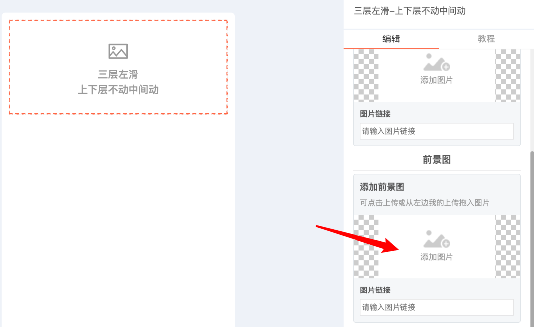 在編輯頁面右側(cè)點擊「添加前景圖」按鈕,添加前景圖