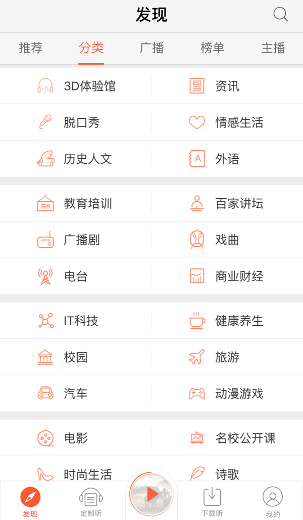 喜馬拉雅是目前可聽材料最全的手機應(yīng)用,其內(nèi)容涵蓋方方面面,無論你是想聽聽新聞,還是脫口秀,是想學(xué)外語,還是聽小說,都能在這里找到你喜歡的。