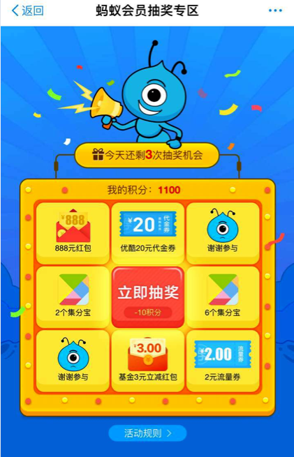 3)支付寶會(huì)員每日限量抽獎(jiǎng)
