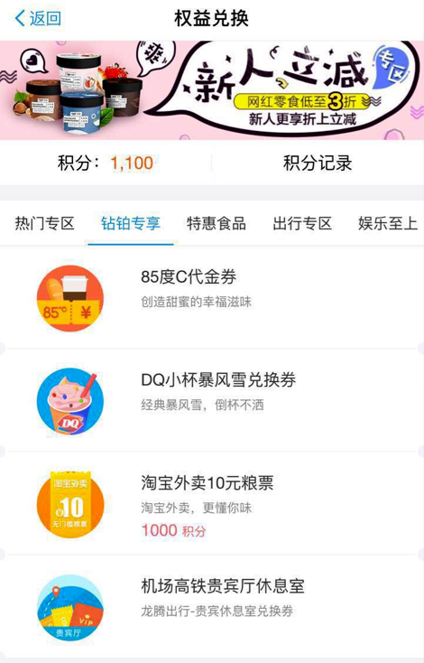 會(huì)員和積分是用戶體系中密不可分的兩兄弟,建立會(huì)員權(quán)益時(shí)也可考慮和積分打通,會(huì)員升級(jí)時(shí)贈(zèng)送一定數(shù)量積分,積分兌換也可設(shè)置指定等級(jí)專區(qū),營造會(huì)員身份的尊貴感。