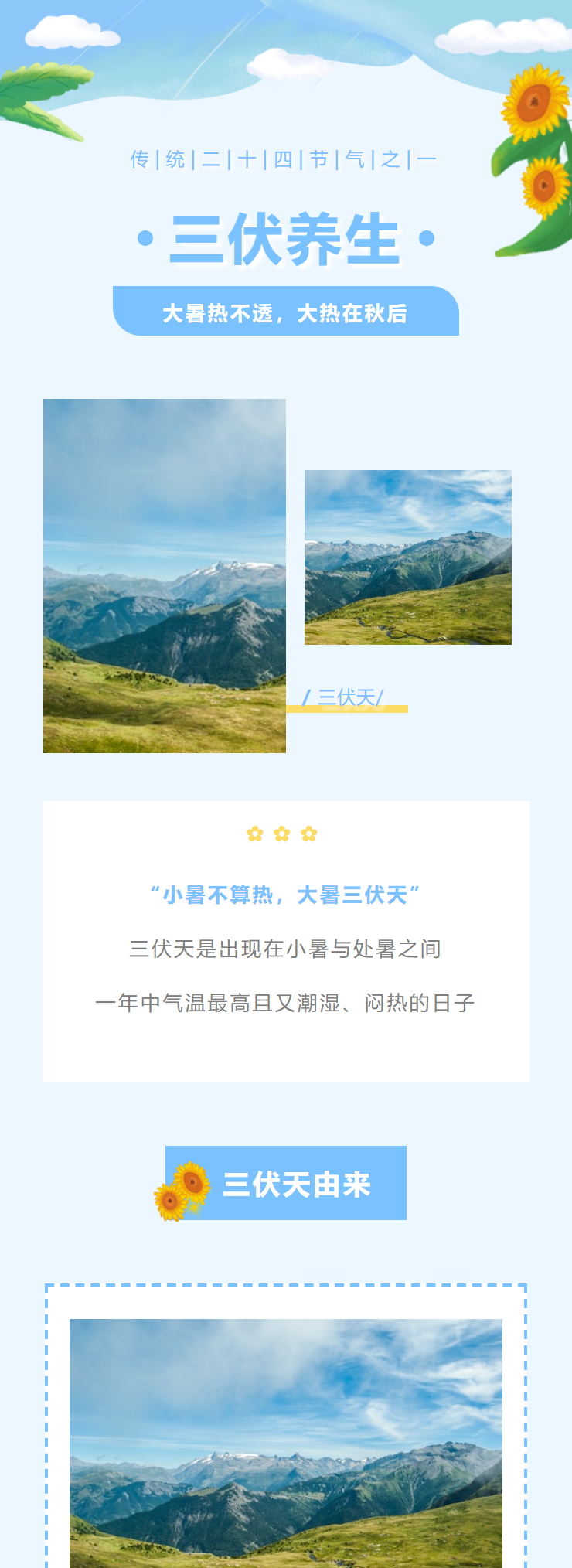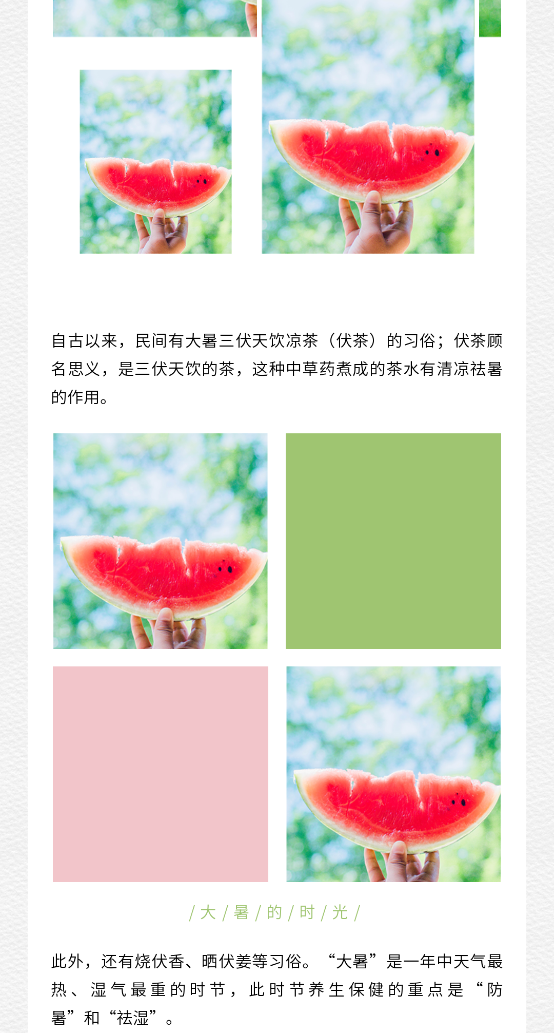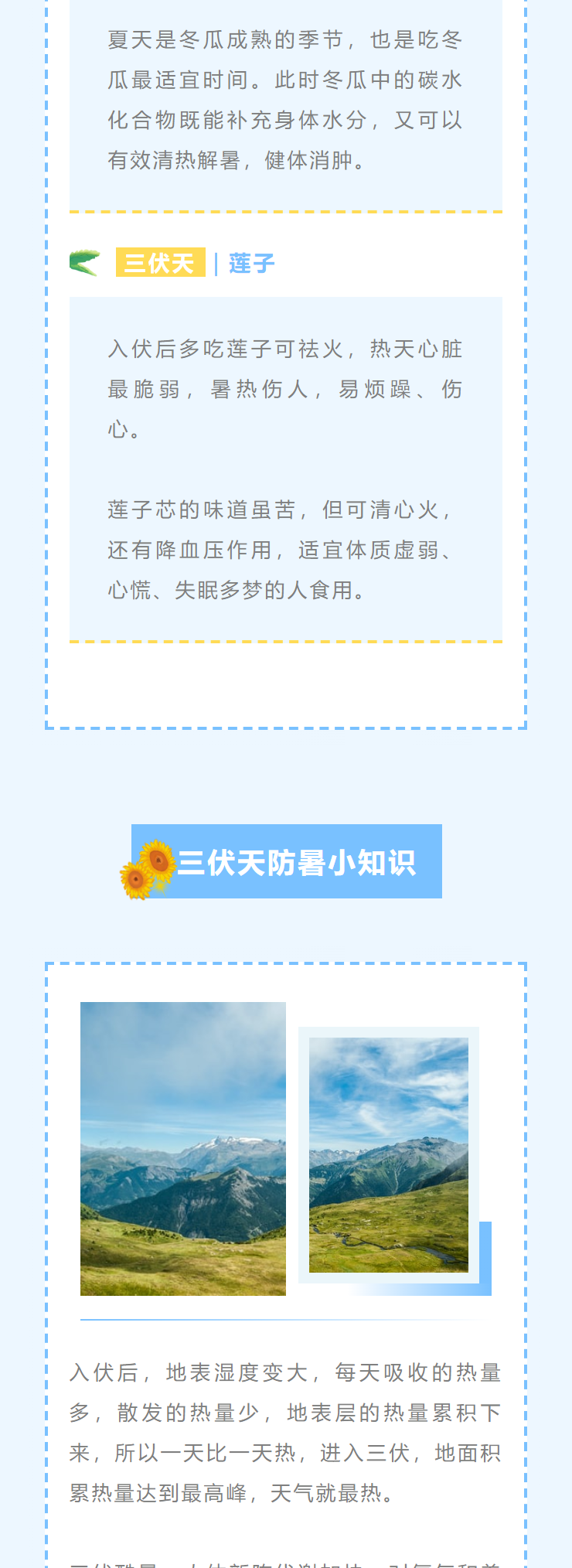 三伏天養(yǎng)生科普類公眾號推文排版模版(夏季中醫(yī)養(yǎng)生避暑圖文宣傳文案)