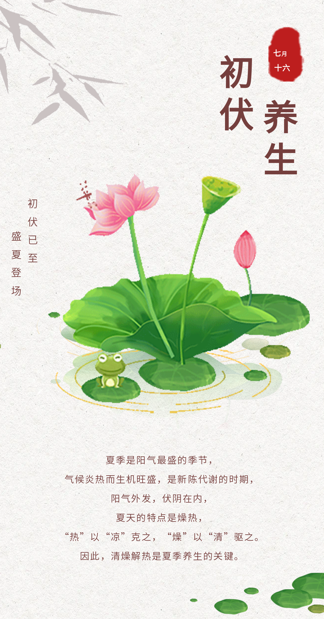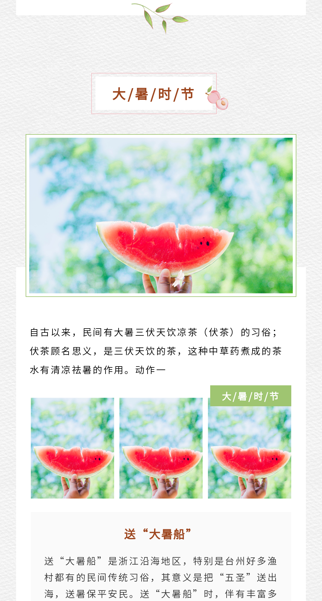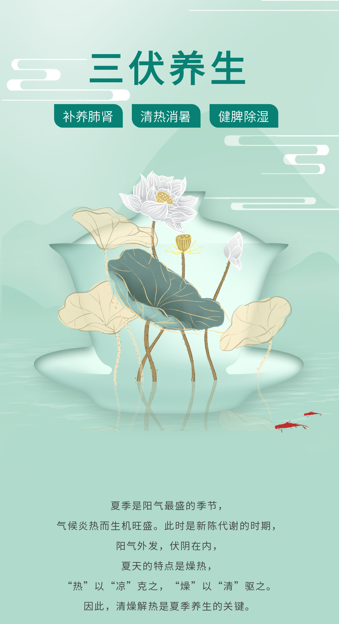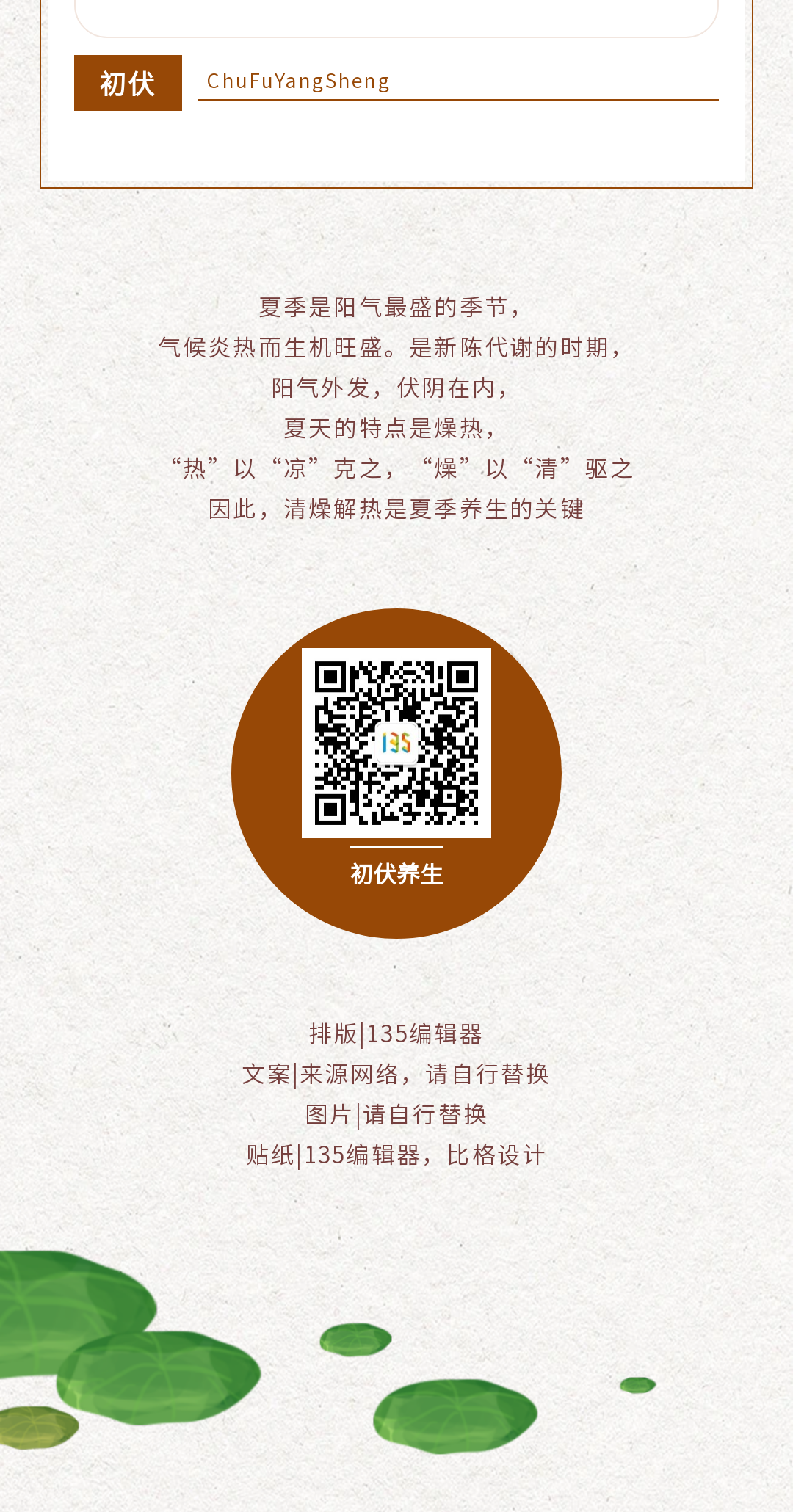 三伏天養(yǎng)生科普類公眾號推文排版模版(夏季中醫(yī)養(yǎng)生避暑圖文宣傳文案)