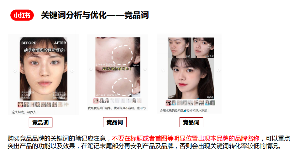 根據(jù)不同產(chǎn)品線/賣點(diǎn)/功效,選擇不同的競品設(shè)置:譬如W品牌在代餐奶昔上競爭對(duì)手是S,則在購買“S”品牌詞時(shí),應(yīng)選用高熱度的代餐奶昔筆記;在益生菌上競爭對(duì)手是F,則在購買“F”品牌詞時(shí),應(yīng)選用高熱度的益生菌筆記。