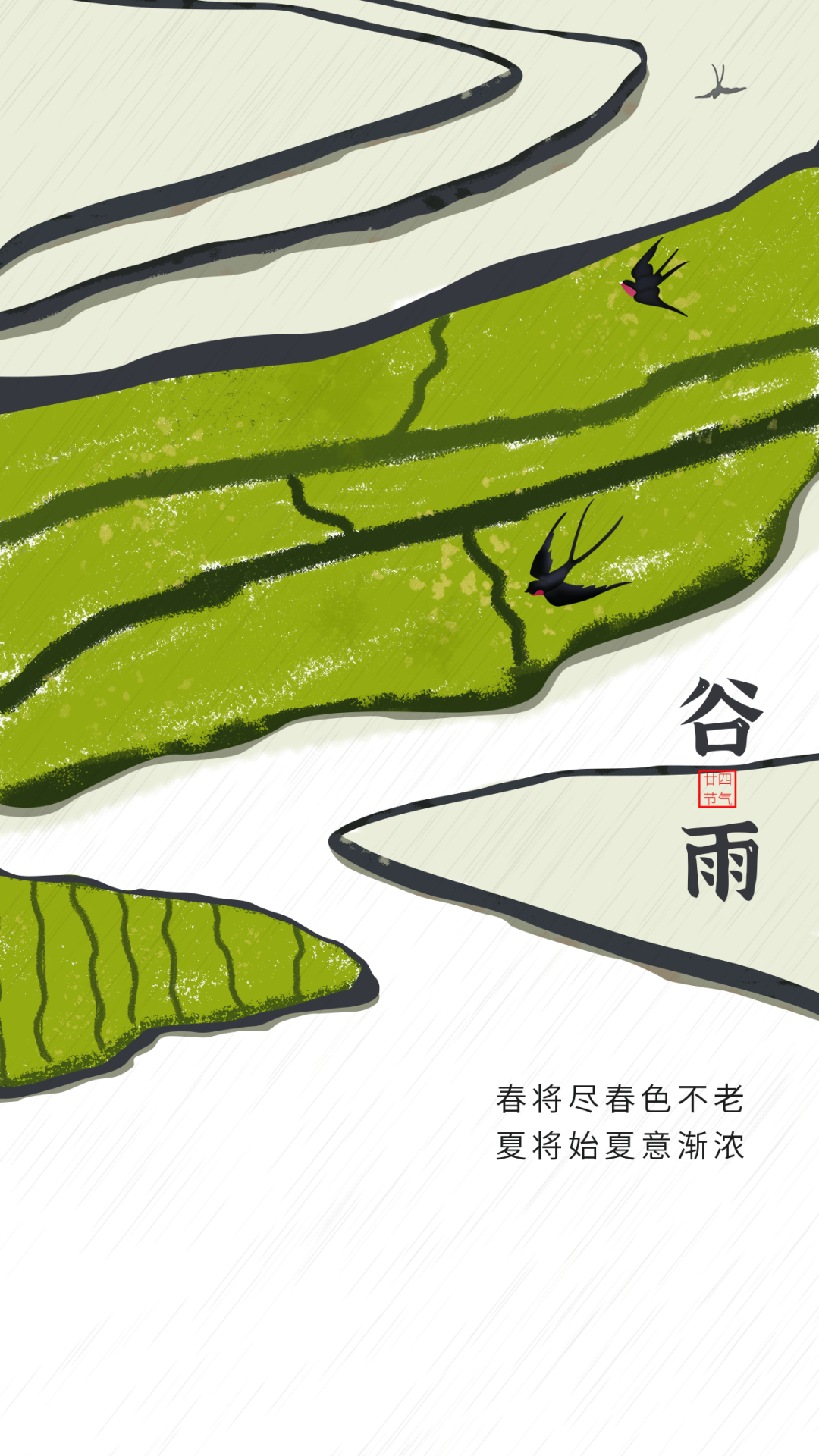 鳥(niǎo)弄桐花日,魚(yú)翻谷雨萍