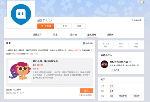 話題主頁 – 這就又是另一片廣闊天空了,不但可以在搜索端吸引相關(guān)興趣的用戶,只要你是主持人,里面的內(nèi)容推薦、抽獎(jiǎng)活動(dòng)、投票,話題參與擴(kuò)散等機(jī)制都是滿滿的宣傳工具。這邊因篇幅關(guān)系不具體展開,可自行了解或加入獵由世談小密圈跟圈主深度探討。