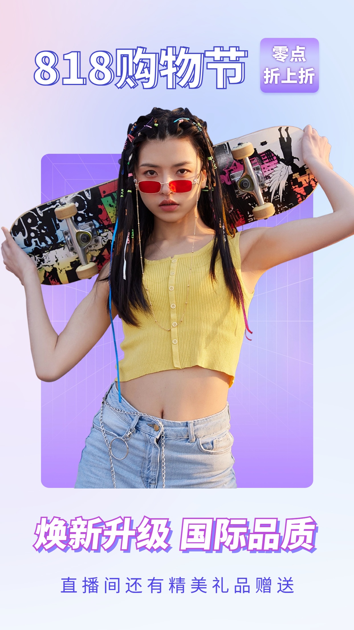 4、“電商直播“行業(yè):818購(gòu)物節(jié)一直都是電商行業(yè)的重要活動(dòng)節(jié)點(diǎn)。電商帶貨、直播帶貨都少不了活動(dòng)產(chǎn)品宣傳。產(chǎn)品促銷、全場(chǎng)折扣、限時(shí)搶購(gòu)等都可以成為各大品牌的活動(dòng)賣點(diǎn),其海報(bào)設(shè)計(jì)也要重點(diǎn)展現(xiàn)優(yōu)惠力度,打動(dòng)顧客的心。
