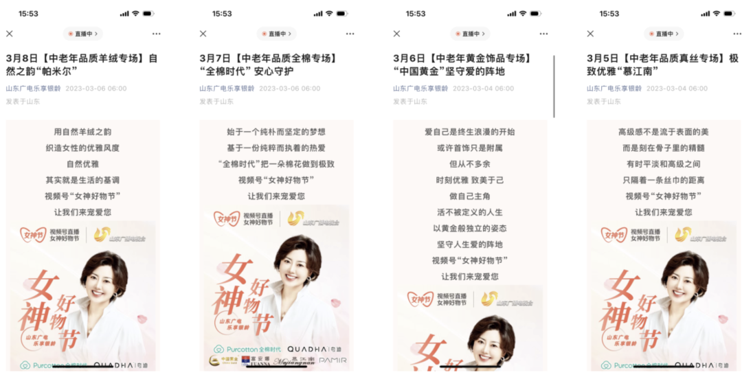 早在進(jìn)軍視頻號(hào)之前,「山東廣電樂享銀齡」作為“銀發(fā)經(jīng)濟(jì)”賽道內(nèi)的生活型品牌 IP,已經(jīng)在山東當(dāng)?shù)匦纬闪顺瑥?qiáng)的品牌勢(shì)能壁壘,并在最近幾年基于公信力背書,通過直播帶貨模式,推動(dòng)了更多的跨界合作。在探索出一條可持續(xù)的新型經(jīng)營(yíng)模式的同時(shí),他們成為了銀發(fā)經(jīng)濟(jì)類目的直播標(biāo)桿。