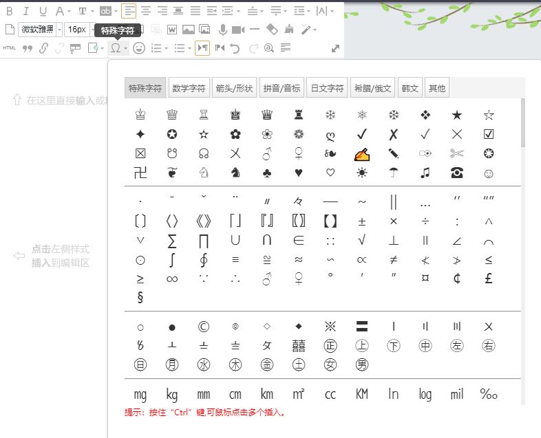 按著ctrl鍵可以連續(xù)插入這些小字符