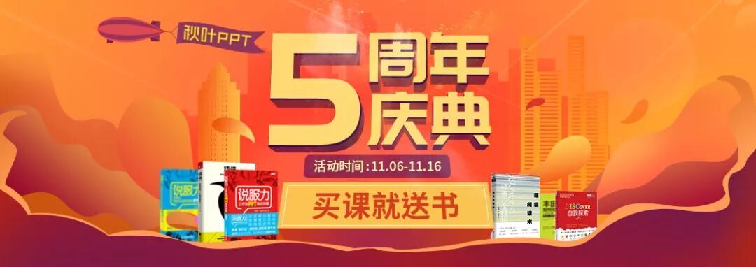 專屬福利:今年雙十一正好是暢銷課程「和秋葉一起學PPT」課程上線5周年,超值優(yōu)惠,買課就送書!立即了解!11.qiuyeppt.com