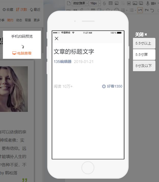 預(yù)覽界面的改動(dòng)也是全面向微信看齊,因?yàn)辄c(diǎn)贊變好看,所以我們的預(yù)覽界面也隨之進(jìn)行升級(jí),閱讀數(shù)、好看標(biāo)志全部跟微信同步,其次這一次預(yù)覽的手機(jī)輪廓也更優(yōu)美,更好看。