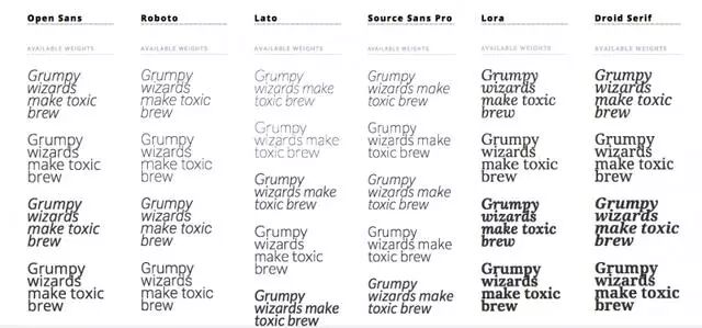 最有用的多用途字型通常還會(huì)提供各種粗細(xì)和類型。