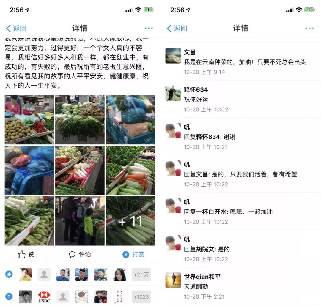 而在帖子的下方,有數(shù)萬人和她互動,有一位網(wǎng)友回復她:我是在云南種菜的,加油!只要不死總會出頭!她回復道:是的,只要活著,都有希望。