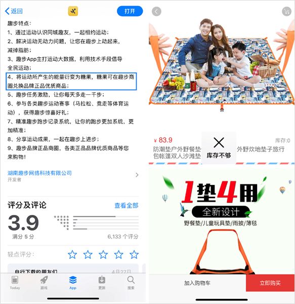 App 下載界面明明說(shuō)的是“糖果可在趣步商圈兌換品牌正品優(yōu)質(zhì)商品”,結(jié)果商圈里的商品根本買不了。