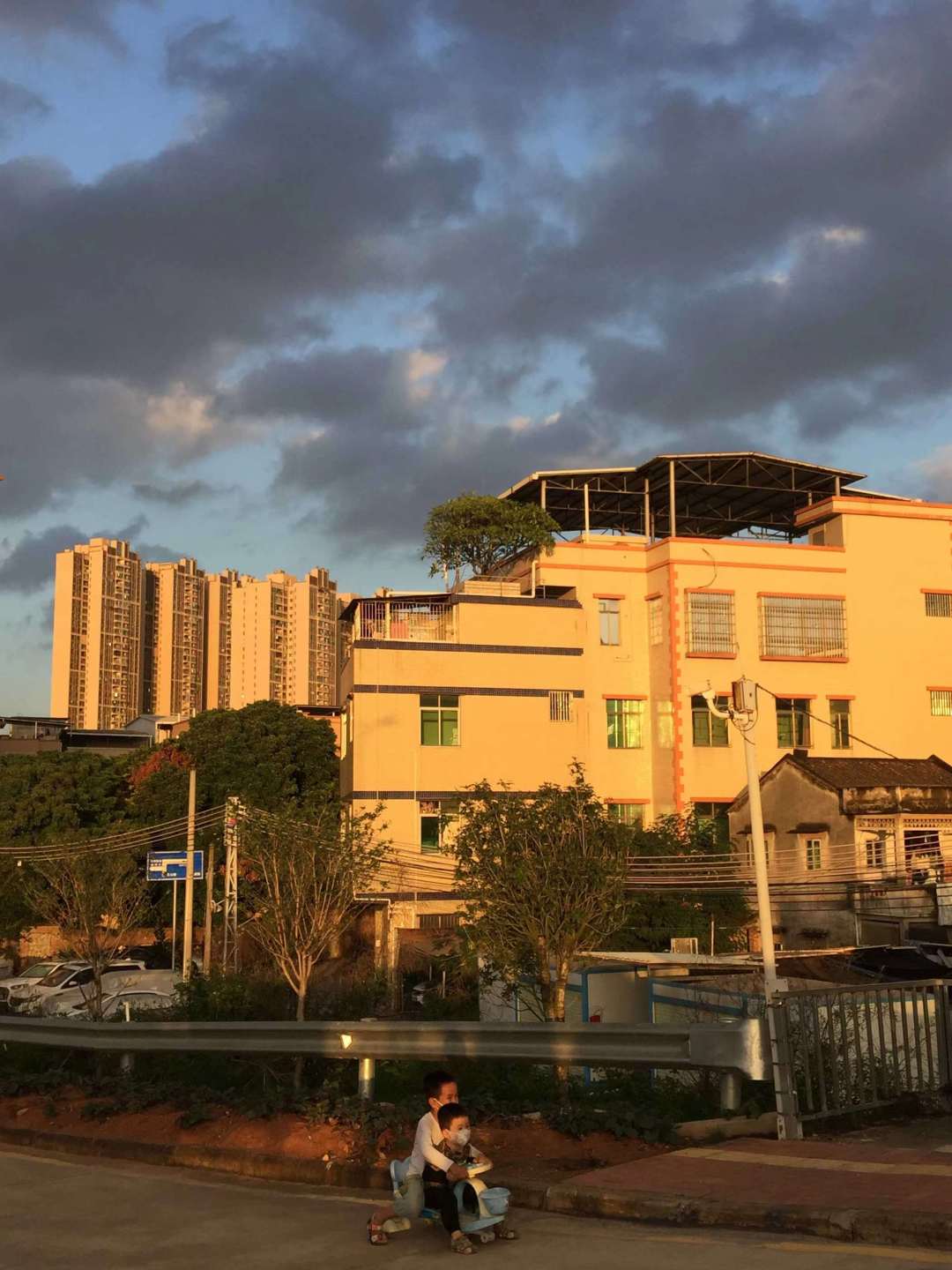 金黃日落灑在居民樓上